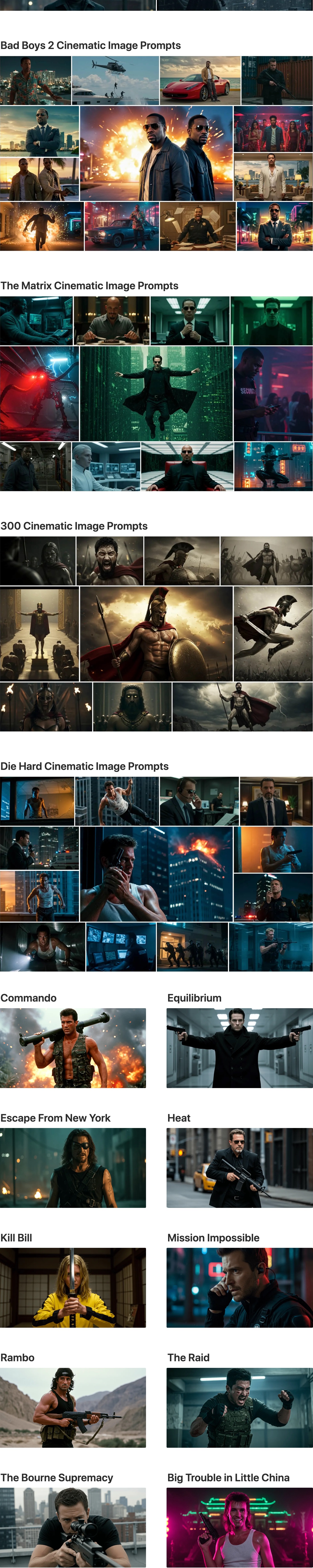 The above are just 3 of the 500 done-for-you prompts included in this pack. You will get 497 more detailed prompts for 25 different movies (20 prompts per movie).