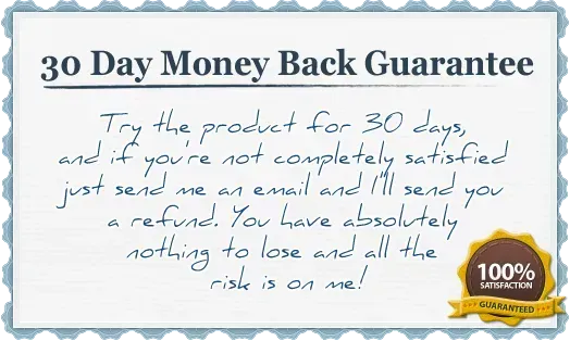 If you’re hesitant for any reason, or you’re not sure if this product will work for you, you’re covered with this guarantee. Try it absolutely Risk Free for 30 full days, and if you’re not completely satisfied, you’ll get your money back.