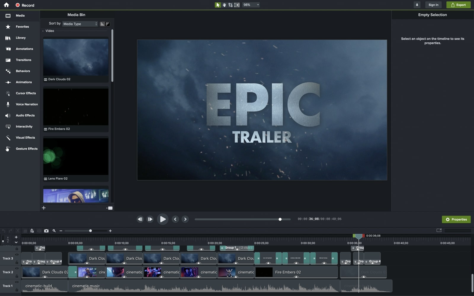 Epic Cinematic Trailer Camtasia Template - $29.99