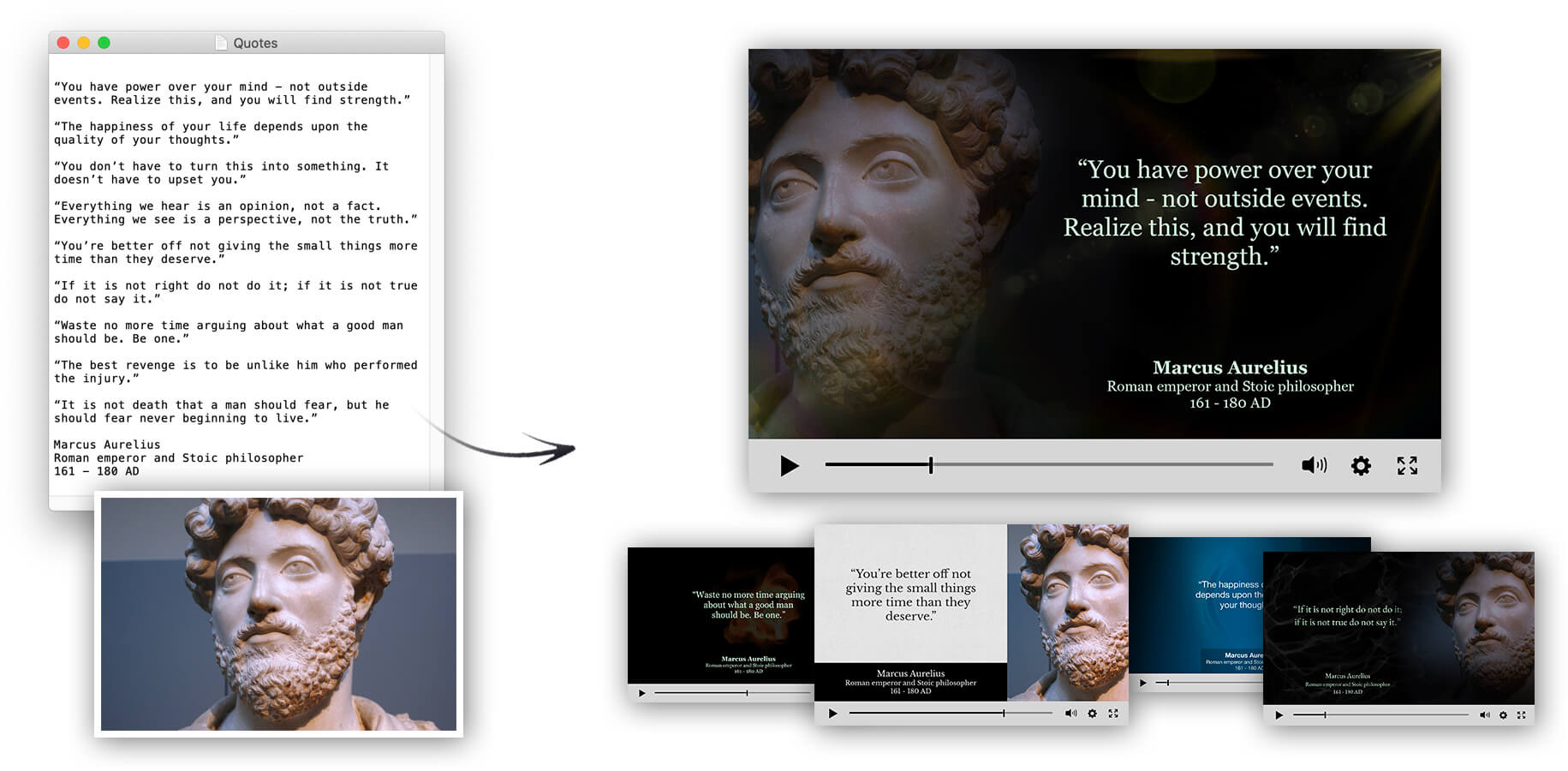 This set of templates will make it easy for you to turn plain text and images into great looking quotes videos, using Camtasia.