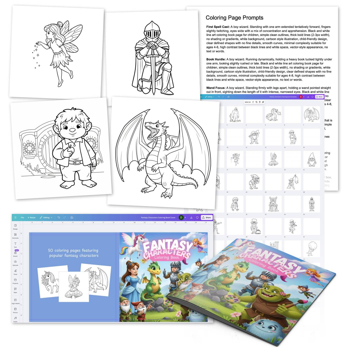 Fantasy is one of the most popular topics when it comes to coloring pages. And with this toolkit you get 500+ HD coloring pages, 250 AI prompts to create your own coloring pages, done-for-you Canva book with 50 pages, book cover, mockups, and more.