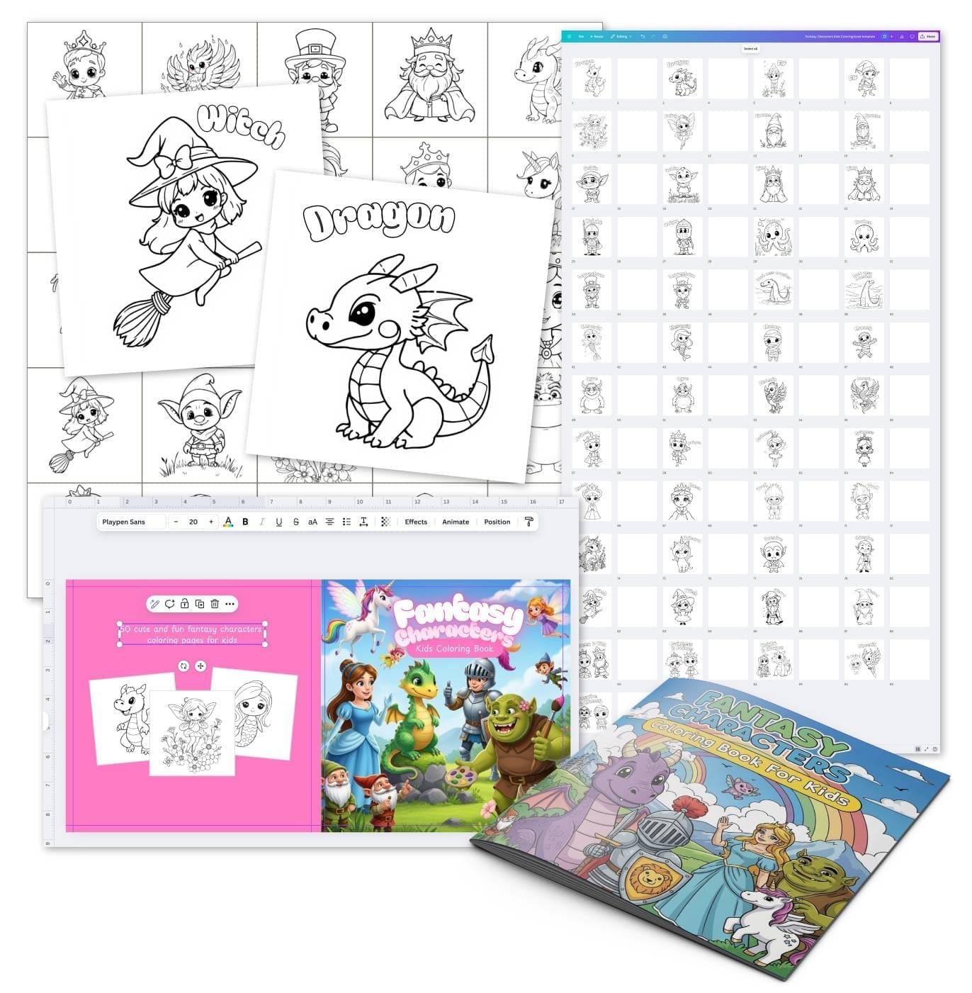 This is a BRAND NEW Fantasy themed coloring book toolkit, that comes with coloring pages, AI prompts, Canva book template, and more.