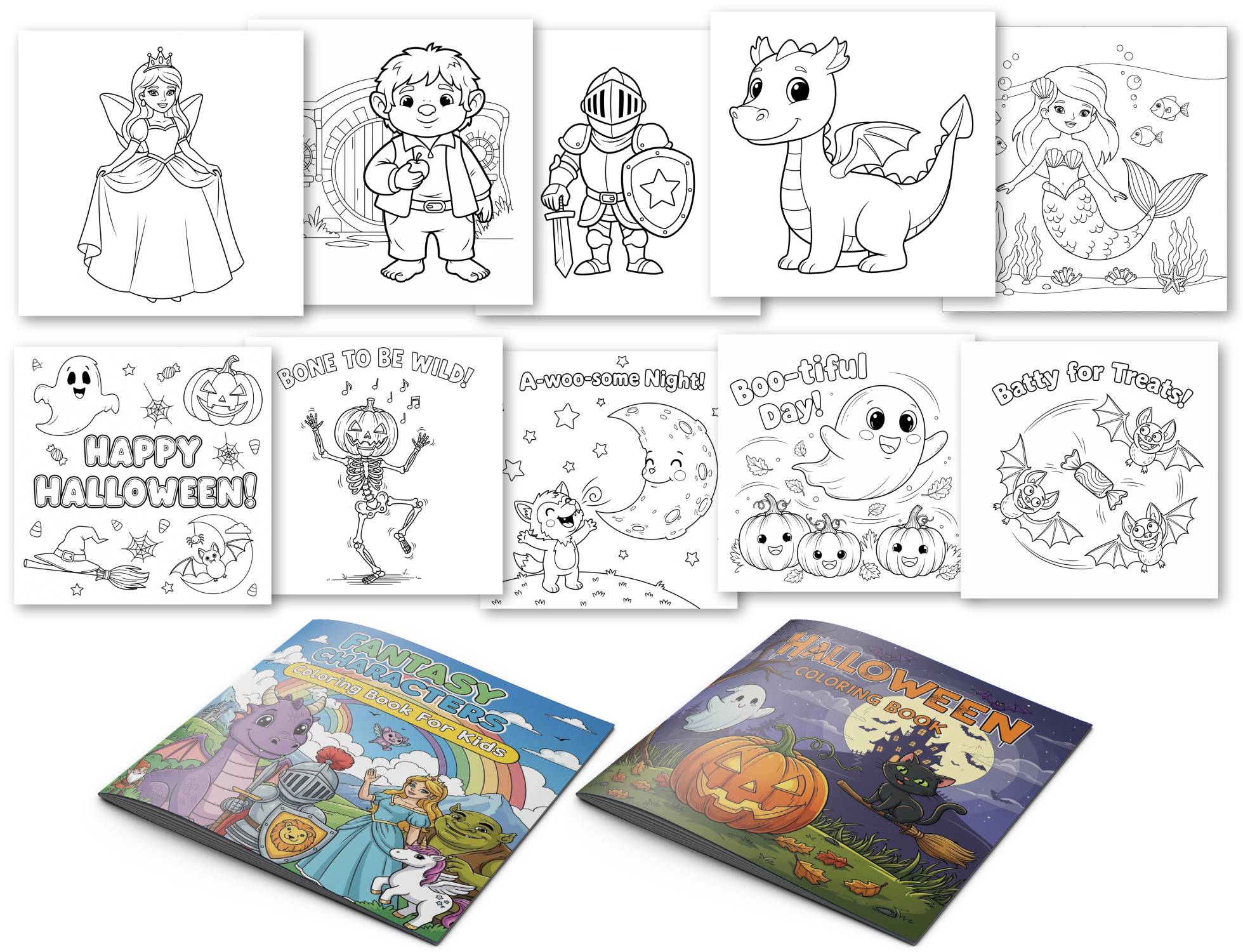 FE: $9.95 with 100% commissions - 2-for-1 Fantasy and Halloween Coloring Packs, for the price of LESS than 1.
