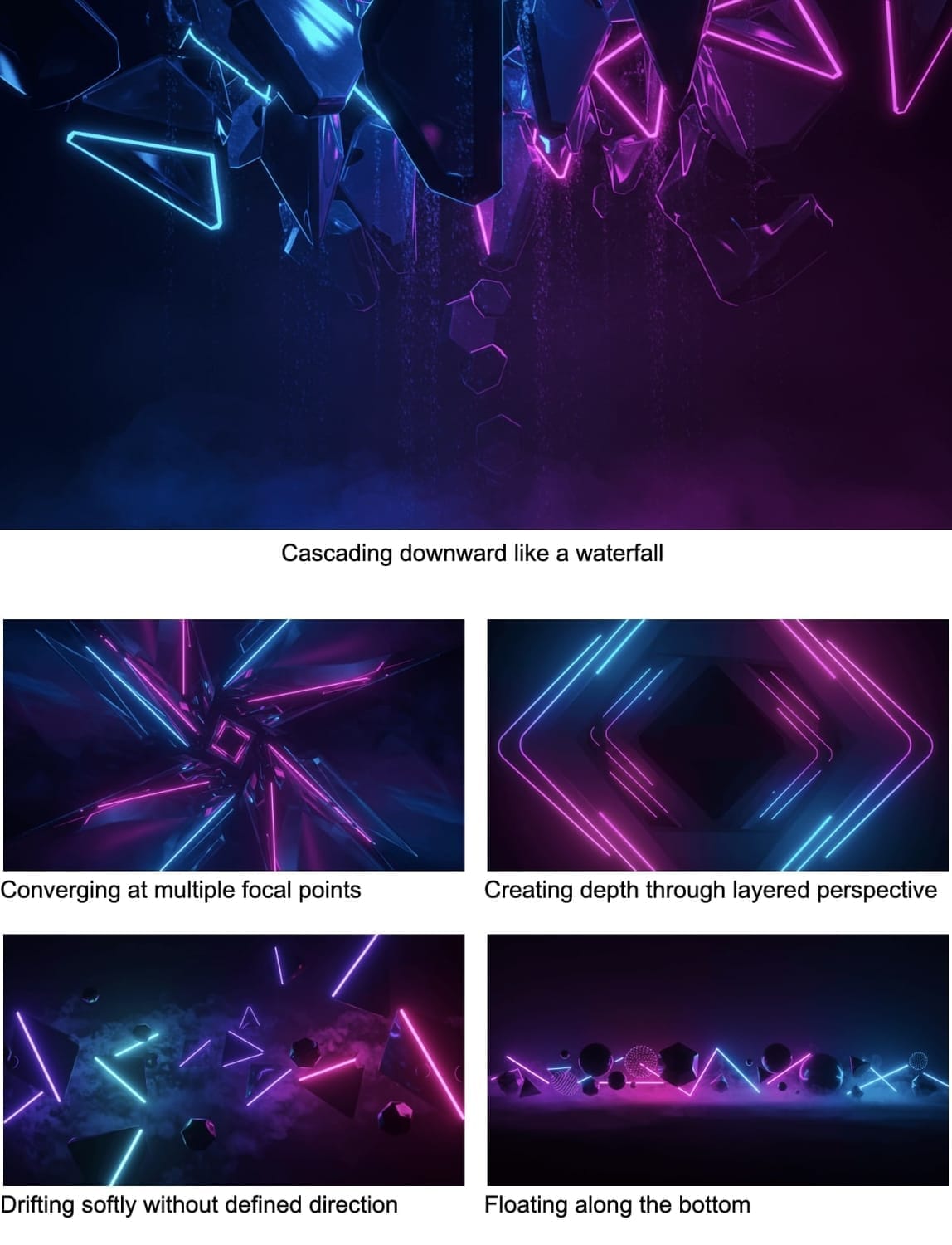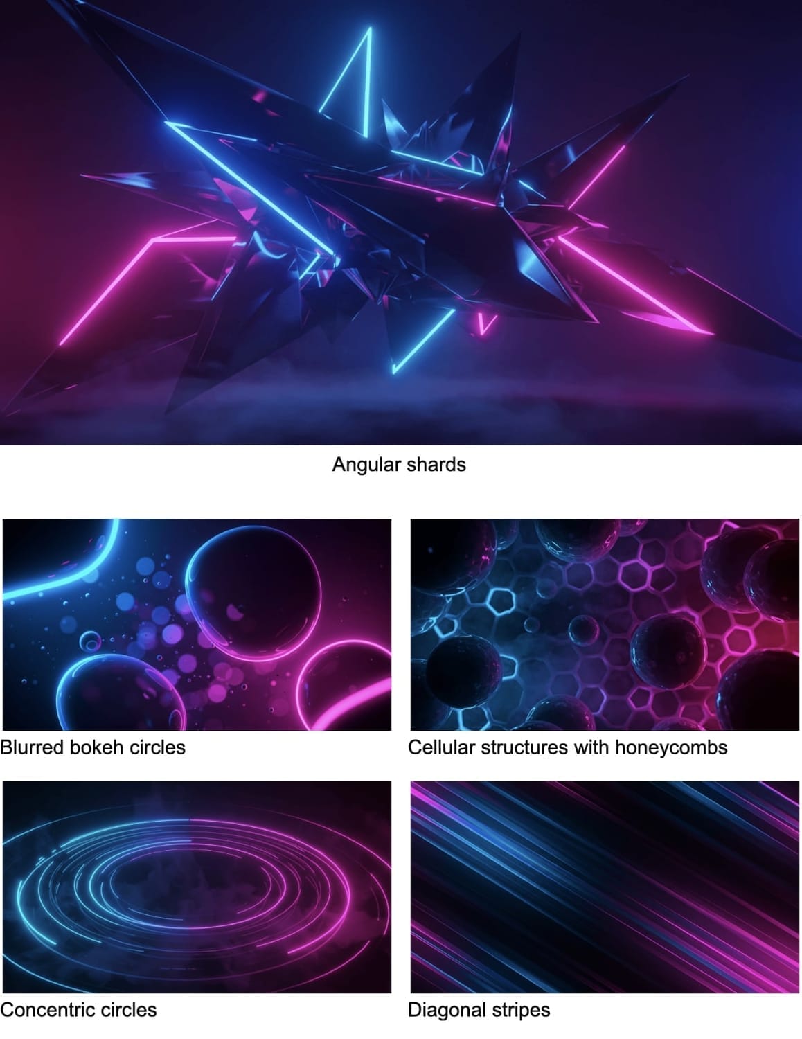 The above examples were created using just 1 background type (Abstract), in just 1 visual style (Neon Dreamscape), and just 1 type of shapes (Geometric Shapes).