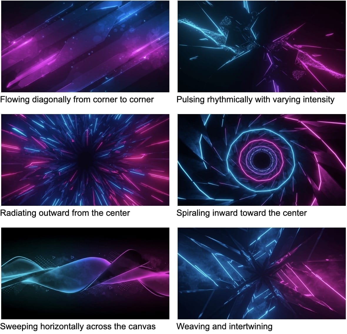 20+ Movement and Flow descriptions (Exploding, Floating, Interweaving, Pulsing, and more)