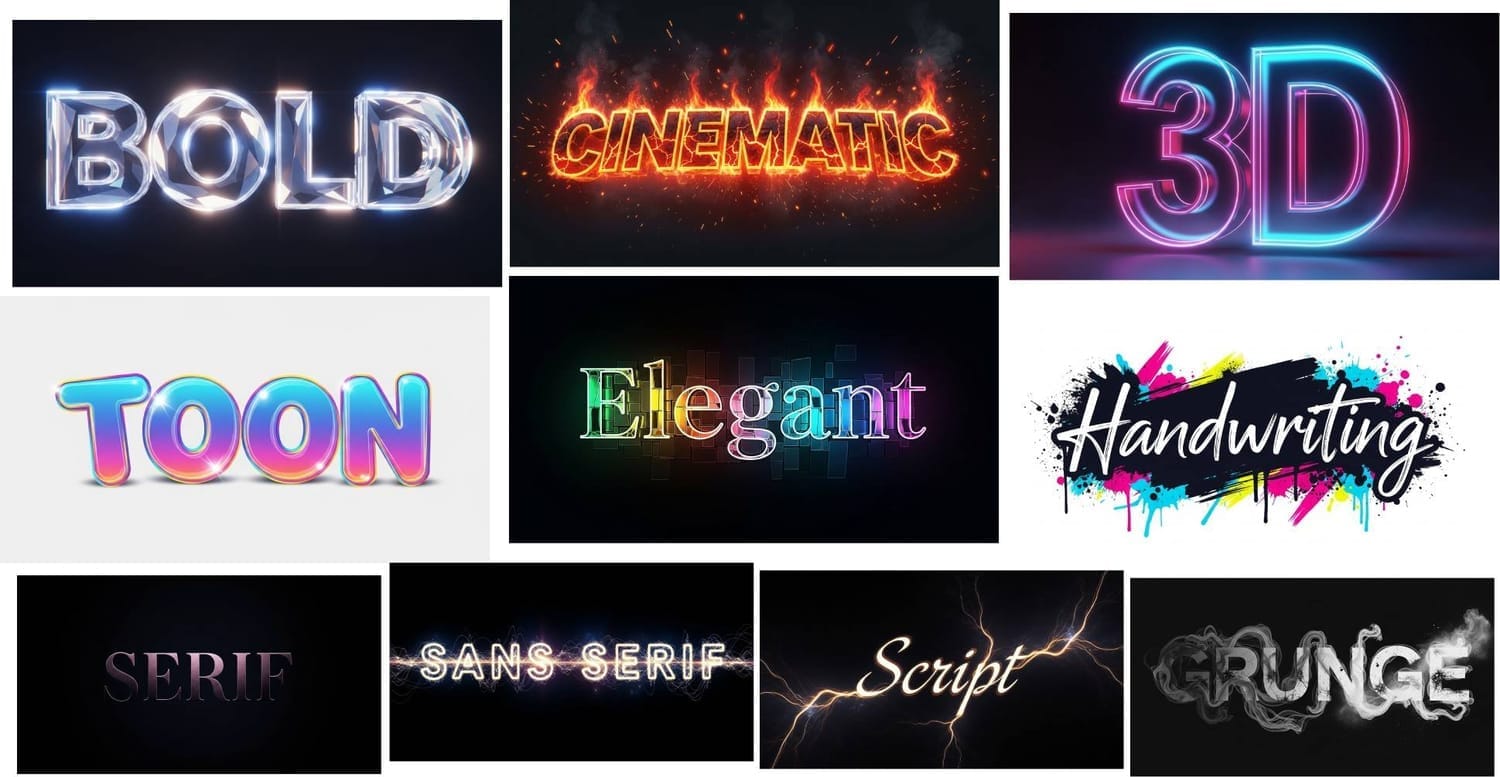 Choose different font styles like: Bold Display Font, 3D Font, Handwritten Font,