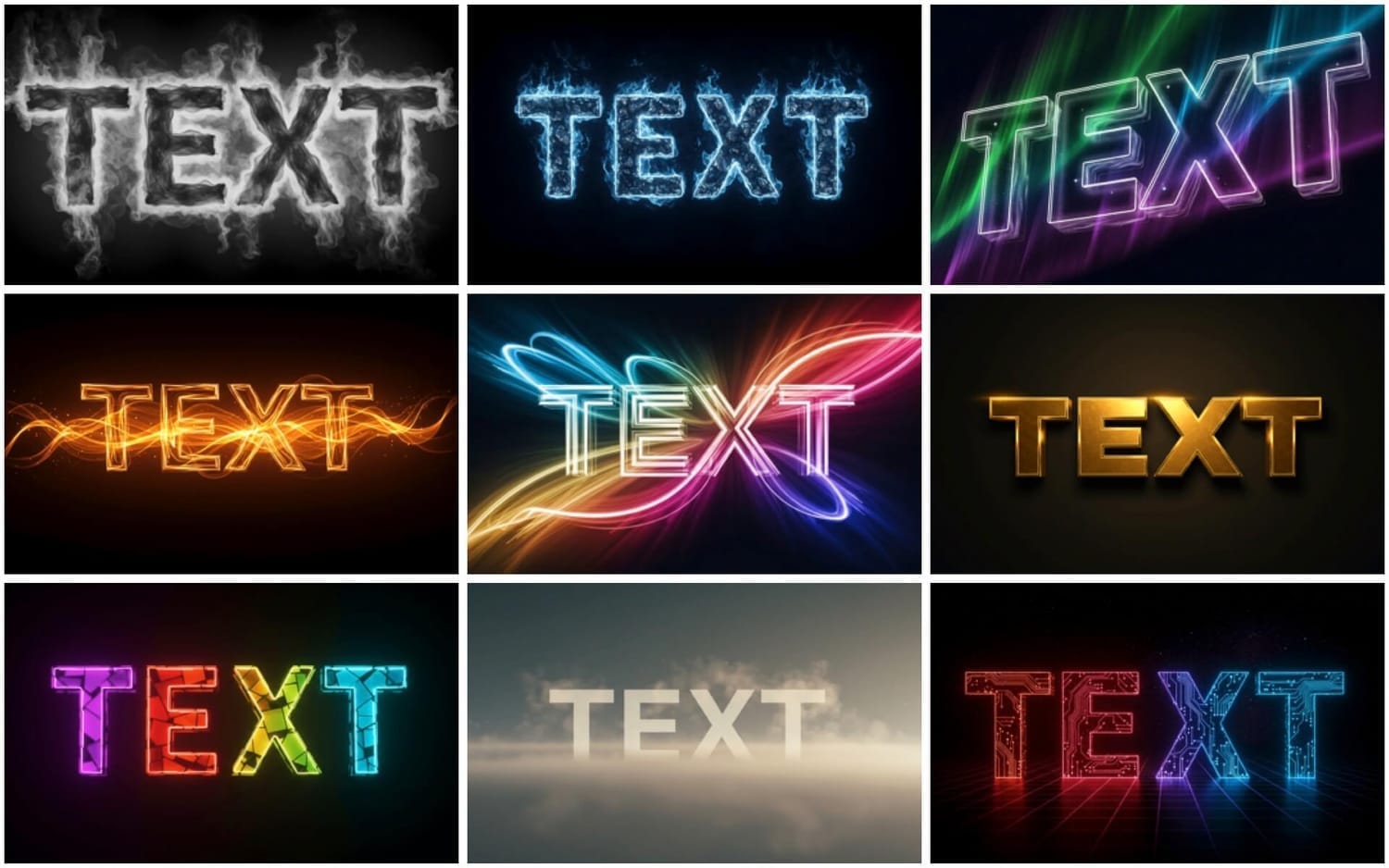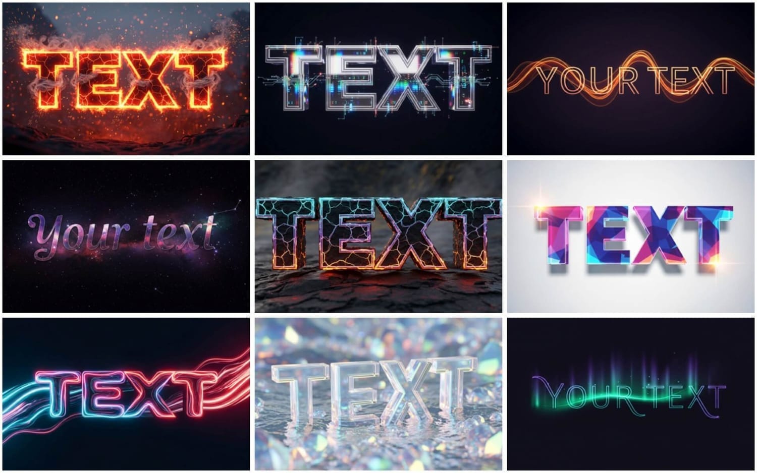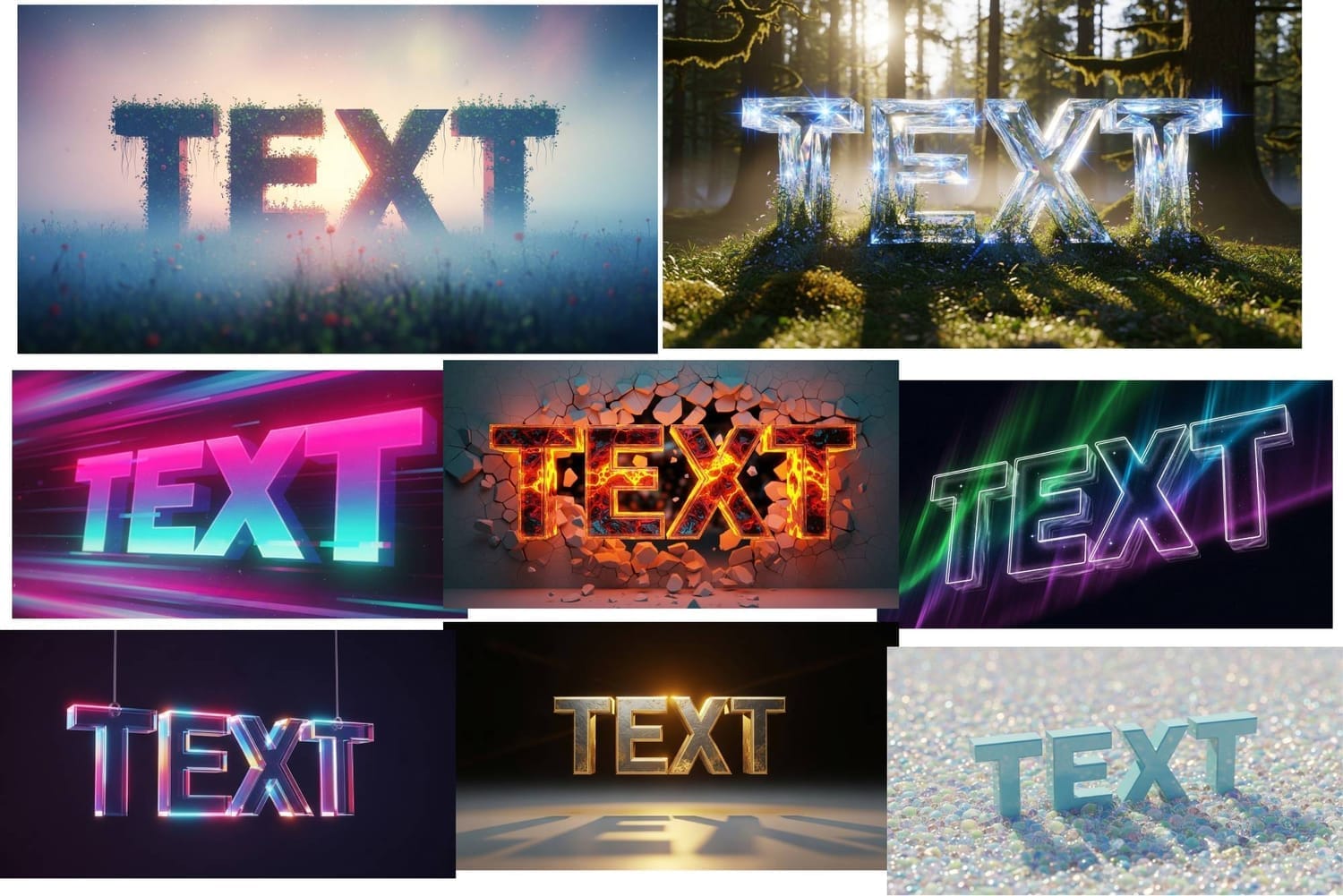 You can create simple text in the middle of the screen, floating horizontally, zooming into the screen, etc.. Or you can have the text displayed in more complex ways where the text becomes part of the background. For example: Growing out of the background, embedded into the background, floating above the background and casting a shadow, and more.